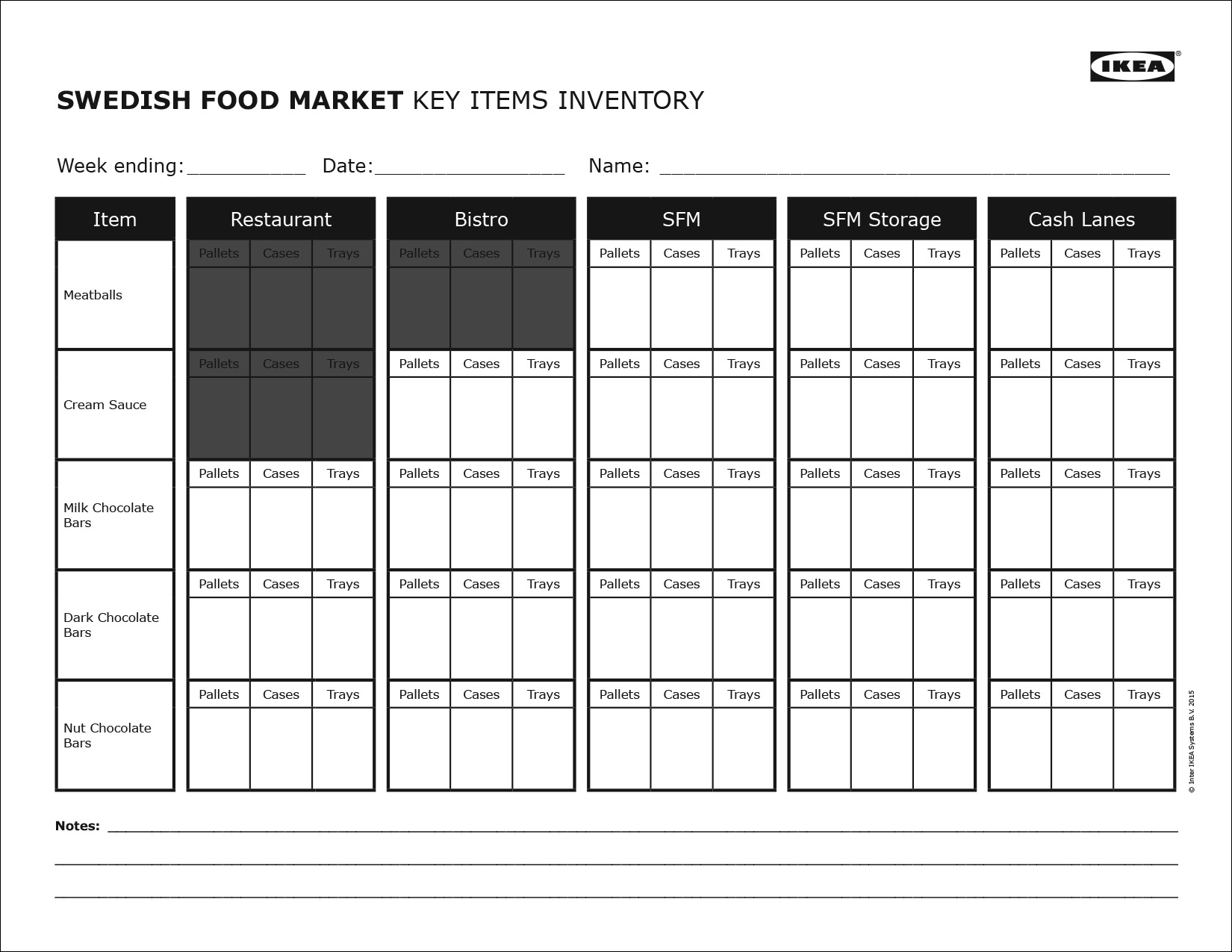 As you can imagine, there are a lot of inventory activities that go on in various departments across the 400,000 sf store. One of the largest inventory responsibilities falls onto IKEA Food co-workers with their products spread over the 5 main areas of the store. In an effort to keep a better tally on inventory, I created this form so that the co-workers could record the information in a very clear and consistent way to pass onto their Managers (regardless of who performed the task). This streamlined the process from scraps of paper that they had been using previously and provided an organized paper trail, should an audit be required.