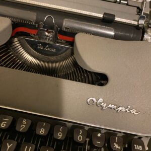 I basically decided to recreate the slide as a wrap around tag. I am such a font nerd, so I poured through my catalog for what seemed like forever. I didn’t like any of them for this project, but I wanted to find something with a vintage feel. I was a little frustrated, but then I spotted my 1960s vintage typewriter that I adore and had an idea.