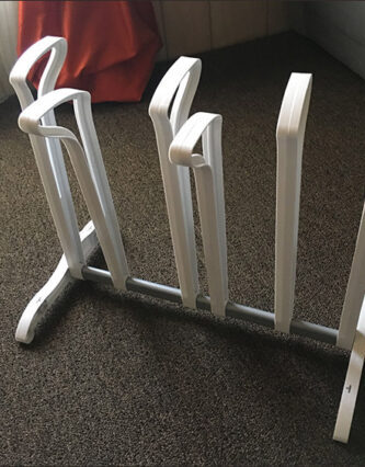 I love tall boots. LOVE them. I have treated myself to a new pair every birthday for the last few years. Which isn’t a problem, except for storage… I ruined my first pair by ignoring them throughout the spring and summer only to discover the cracking leather when I pulled them out come September. Since then, I have tried everything to store my boot collection safely including stuffing them with newspapers and pool noodles. One summer, I even wrapped them all and laid them horizontally in my headboard storage unit until it was time to bust them out again in the fall. But I was always looking for a more convenient and permanent storage solution as I am not organized enough to be a seasonal closet switcher.